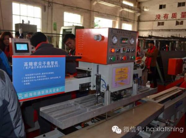 本次發(fā)布會通聯(lián)共展出13臺新型機械設(shè)備,均屬國際水平,其中國家專利產(chǎn)品高尖子卷管機,在發(fā)布會現(xiàn)場受到了國內(nèi)外漁具制造商的強烈關(guān)注,此次發(fā)布會現(xiàn)場大約有400多家來自世界各地的漁具制造商參觀采購。