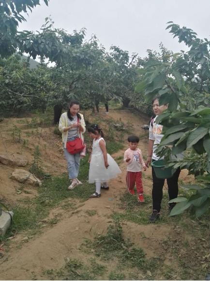 一到采摘園,大家分散開來(lái),鉆進(jìn)上百顆櫻桃樹的的櫻桃園,享受櫻桃盛宴。邊摘邊吃,玩的不亦樂乎,重要的是和家人同事在一起,就是開心。各種歡呼聲、笑聲不絕于耳,大家爭(zhēng)相合影。