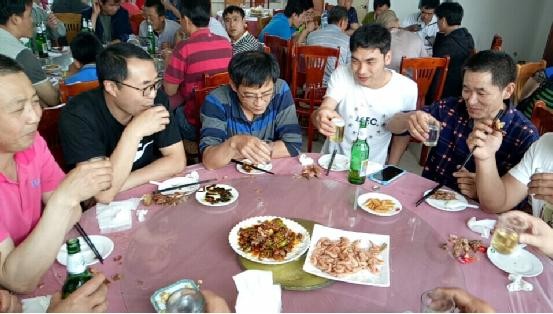 2個(gè)小時(shí)后,大家才戀戀不舍地離開櫻桃園,趕往下一站——農(nóng)家樂。農(nóng)家經(jīng)濟(jì)實(shí)惠而美味的大餐讓大家大快朵頤,舉杯同樂。